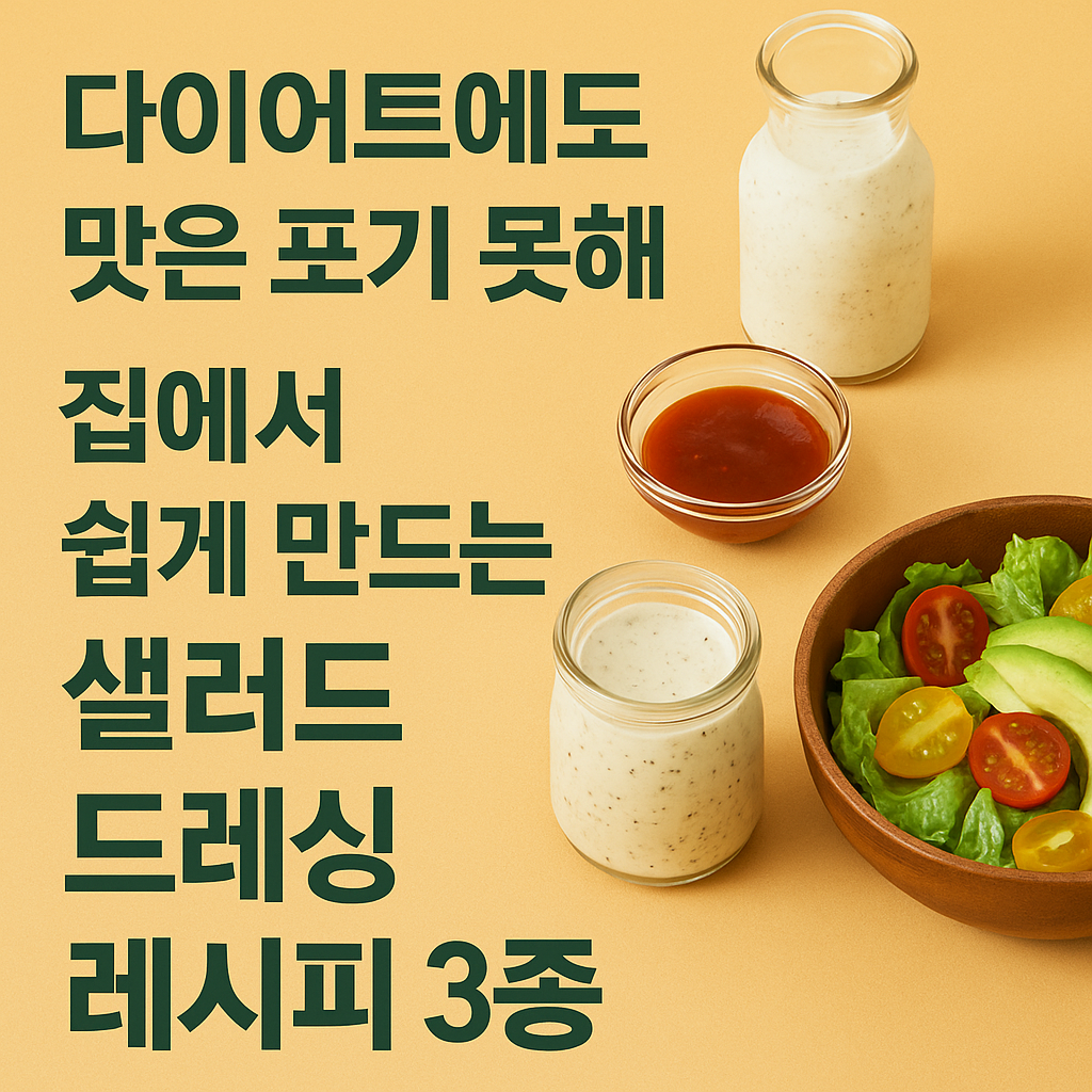 칼로리는 낮고, 맛은 절대 포기하지 않는 샐러드 드레싱 레시피 3종을 소개할게요.