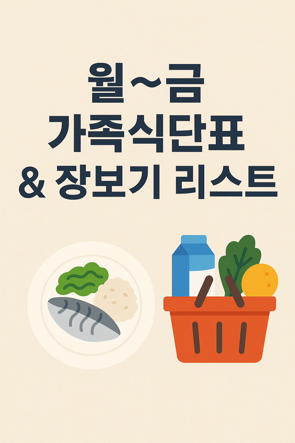 그래서 오늘은 아침은 빠르게, 저녁은 맛있고 건강하게! 구성한 월~금 가족 식단표와 장보기 리스트를 공유할게요.
