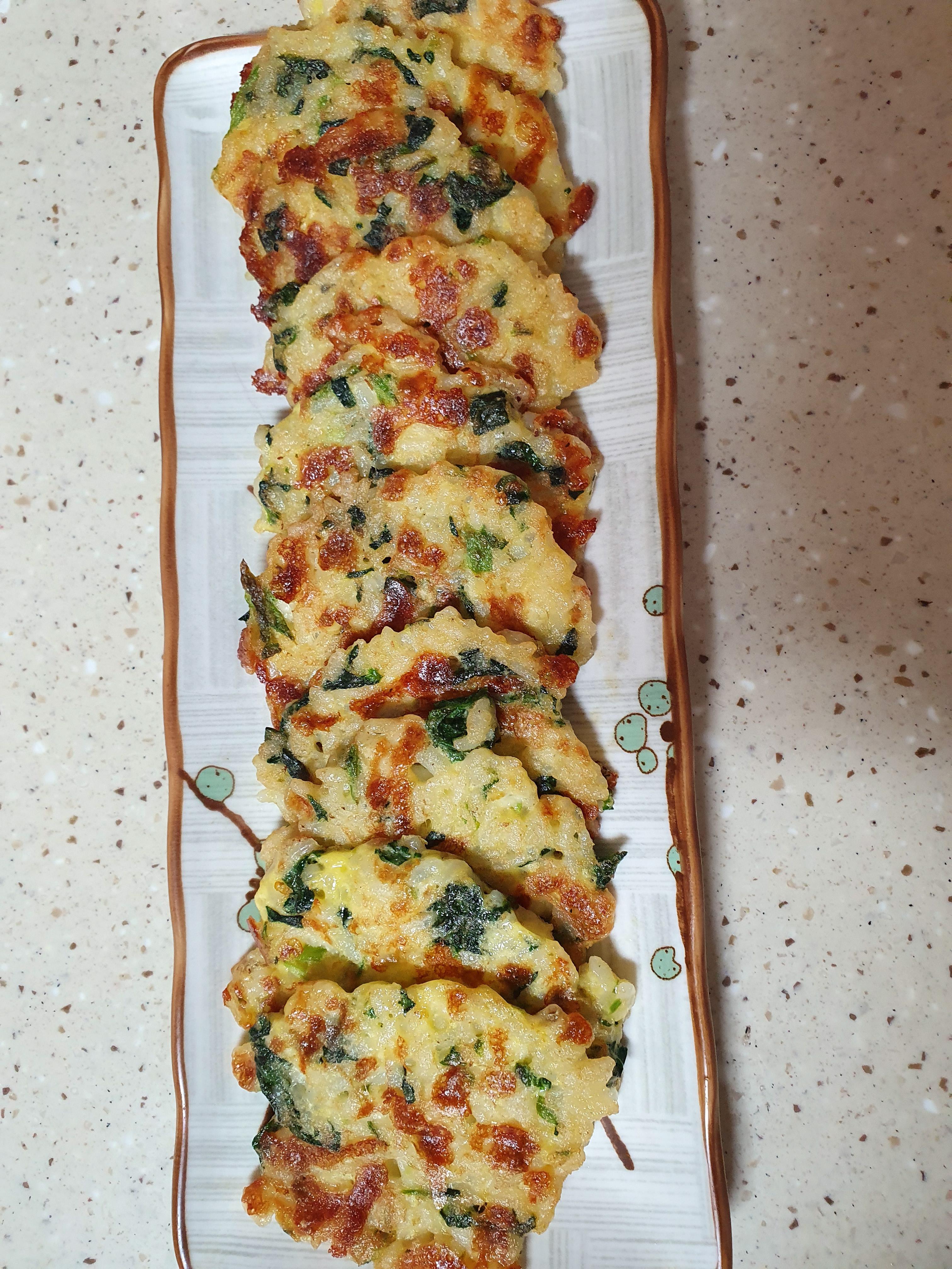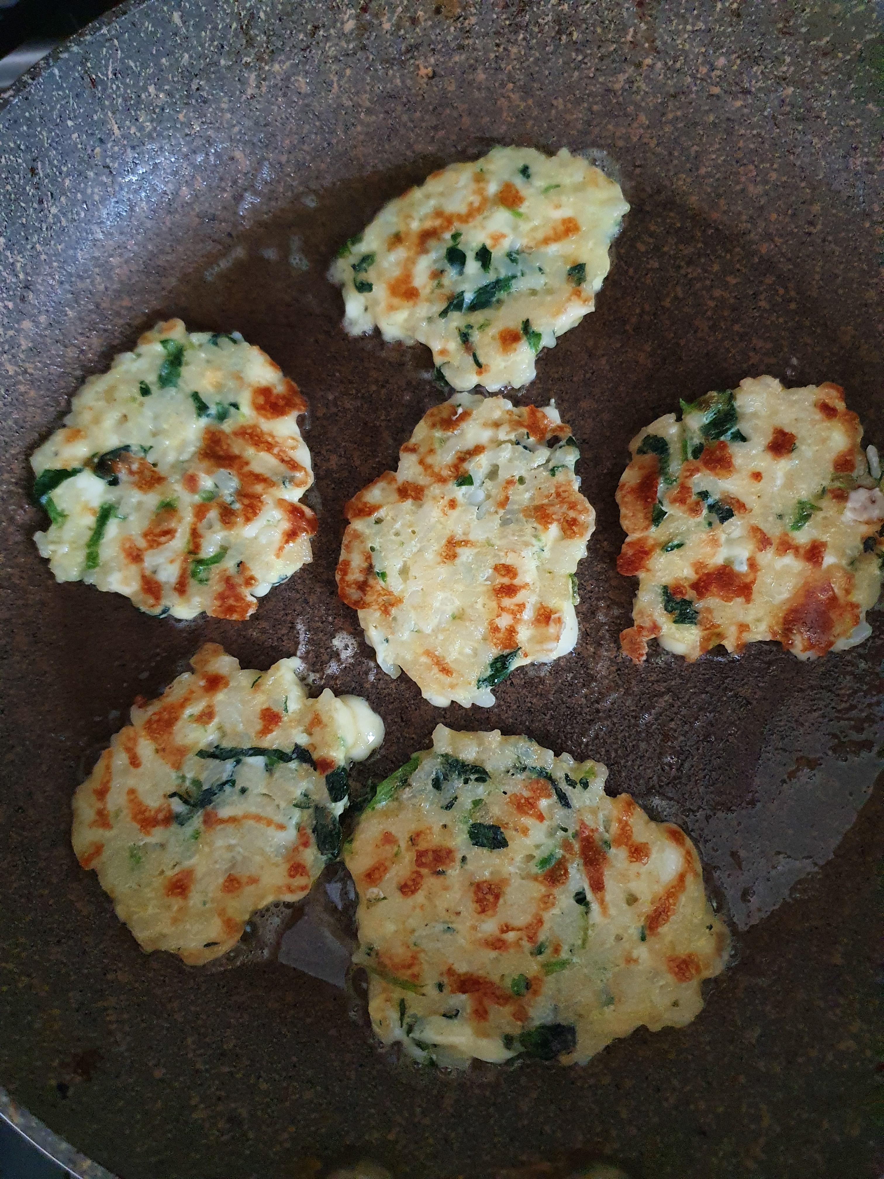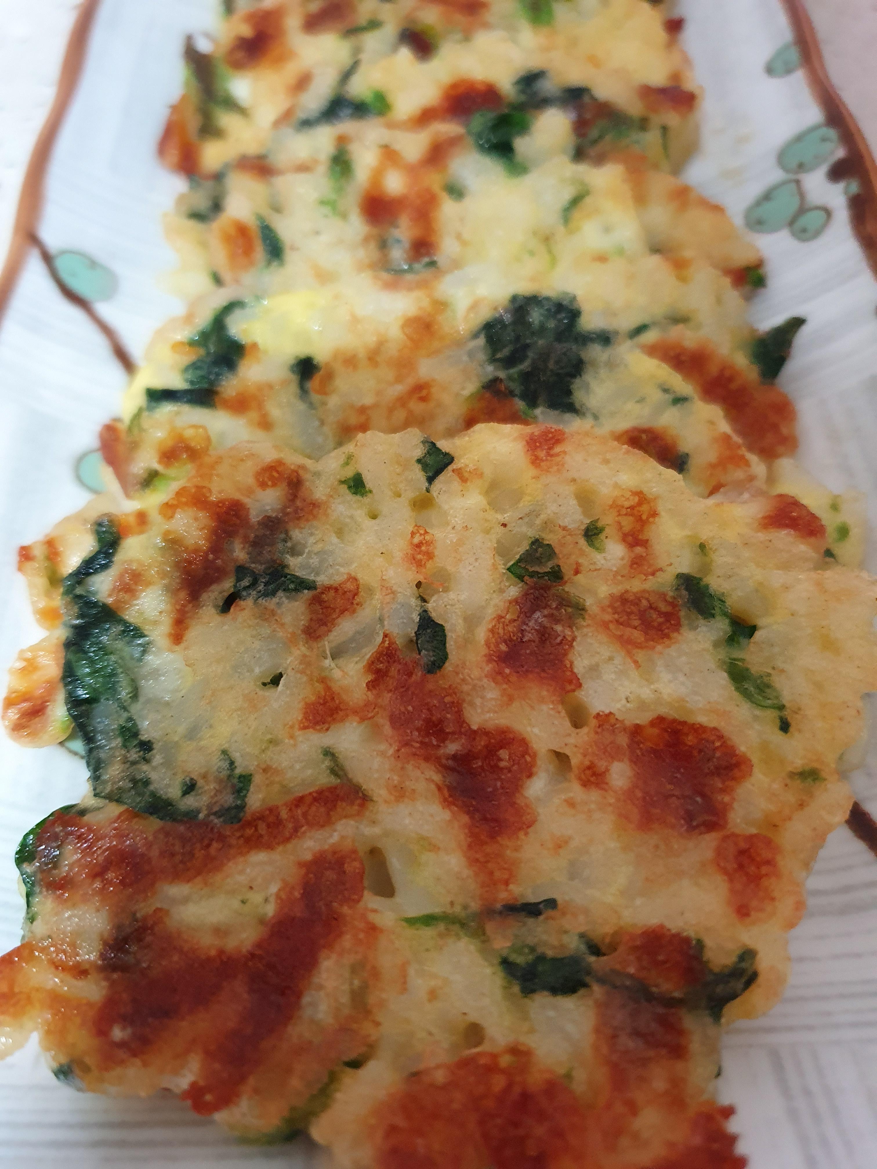 뭘 먹여야하나 하다가 어제 저녁에 먹고 조금 남아있던 시금치무침이 생각나더라구요~~!!요걸로 뭘할까하다가 밥전에 넣어주면 좋겠다 싶어서 쫑쫑쫑 다졌답니다!!