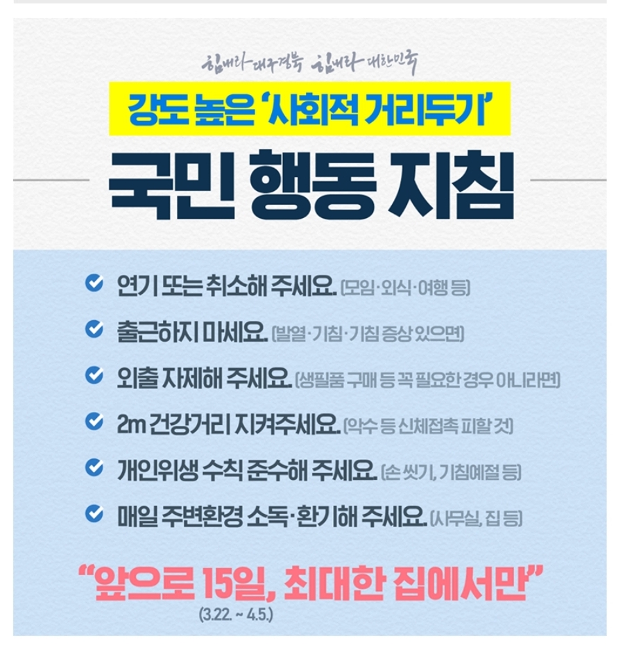 시청 홈페이지에 강도높은 '사회적 거리두기' 지침을 올려두었더라구요!
