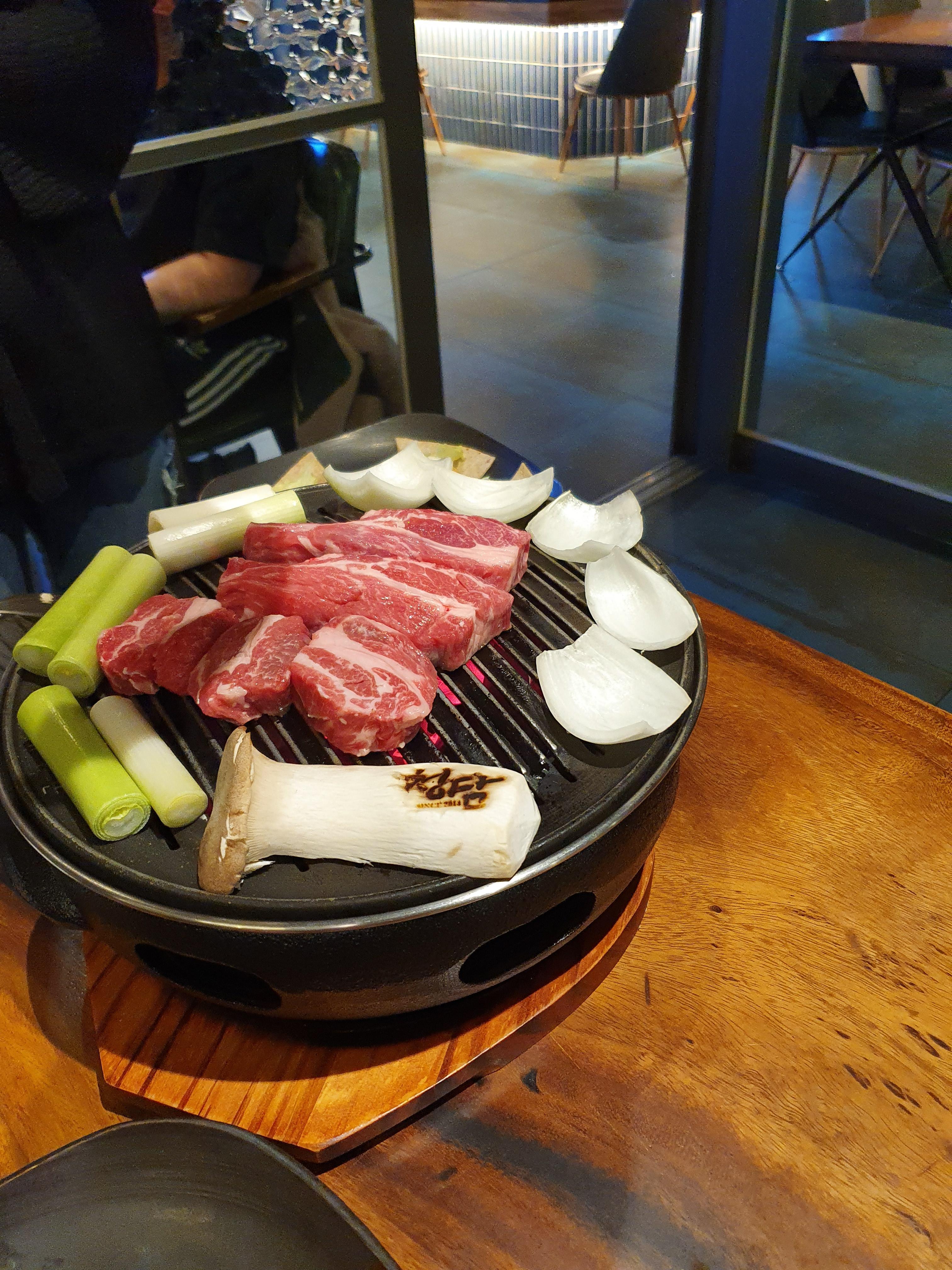 드디어 고기가 나오고 직원분?사장님?께서 직접 구워주셨답니다~~버섯에 가게이름 청담이 새겨져있었어요ㅋㅋ