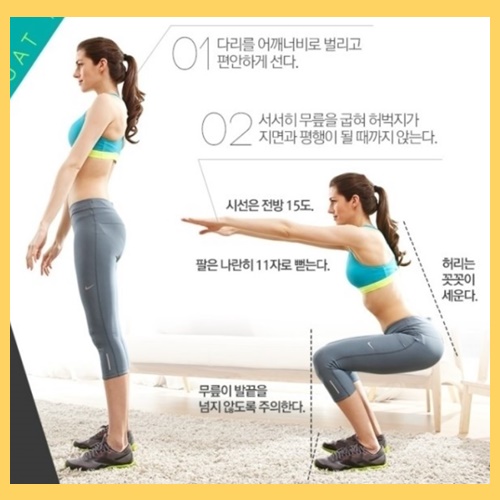 운동해야 되는데 ~~ 생각만 하지 마시고 스쾃를 시작해봅시다!!! 파이팅!!