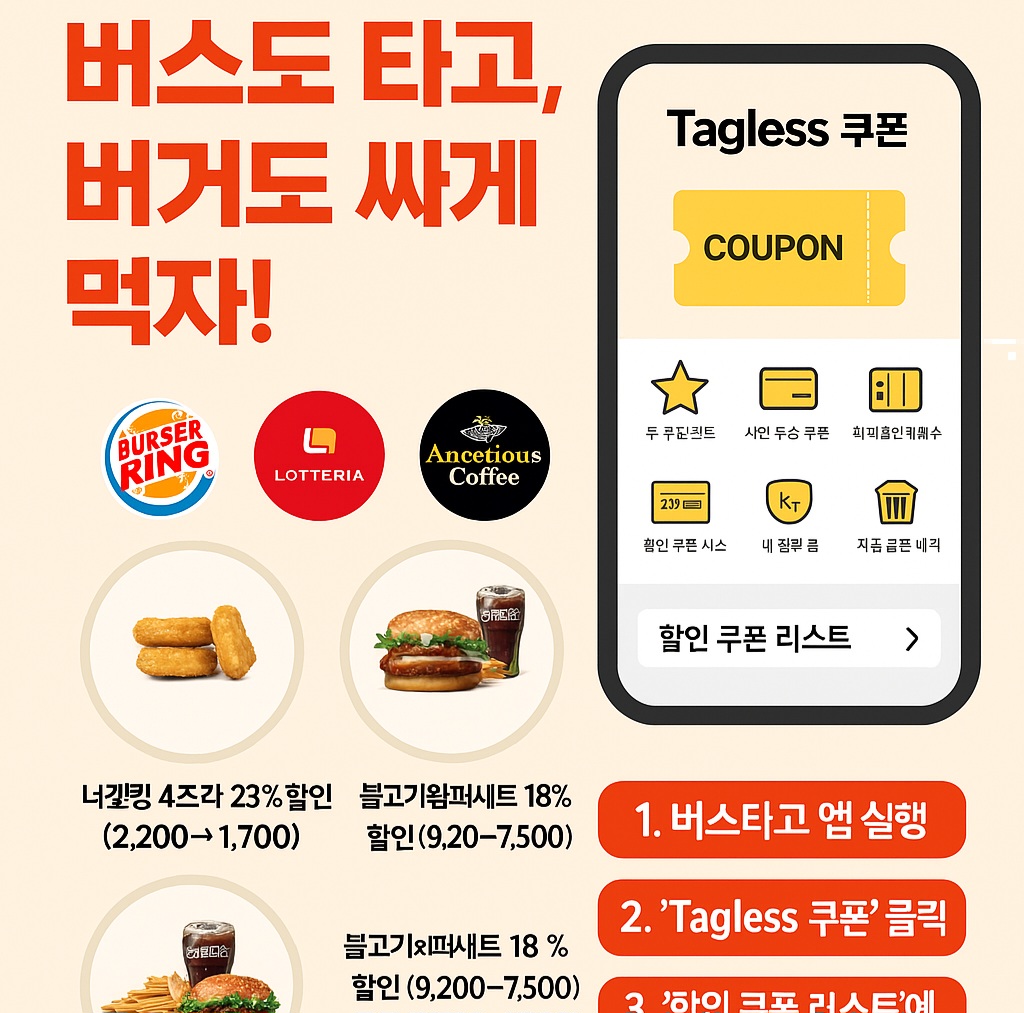 버스 타고 이동할 때, 가까운 버거킹이나 롯데리아 할인도 놓치지 말고 챙기세요!