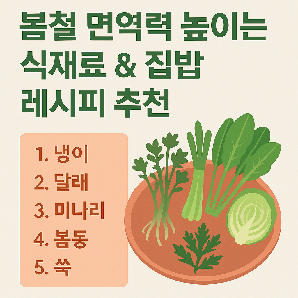 특히 봄철 제철 식재료는 자연이 준 최고의 건강 보약인데요, 오늘은 면역력 강화에 좋은 봄 재료들과 간단한 집밥 레시피를 소개해드릴게요.